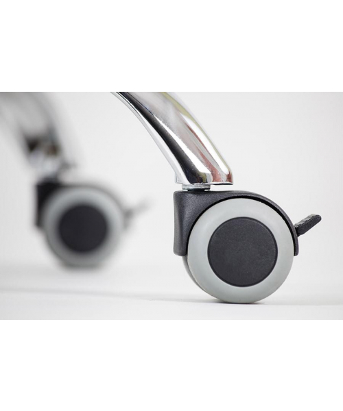 Два колеса имеют стопор (тормоз), при помощи которого можно зафиксировать кресло на месте.
