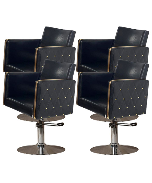 Парикмахерский комплект кресел "Голдиум Блэк Д" - Мягкий элемент этого парикмахерского кресла «Голдиум Black» наполнены практичным эластичным поролоном и обтянуты высококачественной искусственной кожей. Вы не потратите на чистку кресла много времени, потому что они не нуждаются в специальной обработке. Строгость линий и массивная оригинальная форма прекрасно сочетается с высокой степенью удобства, которую получит клиент благодаря материалам, использованным при производстве этой модели.