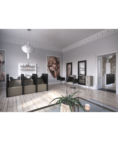 Парикмахерская мойка "Privacy Wash 3P Shiatsu" - трехместная с высоким уровнем комфорта и приватной зоной. Мойка оснащена системой воздушного массажа AIR-SHIATSU. Также мойка оснащена электрической подножкой, обеспечивая клиенту максимальный комфорт. Мойка комплектуется глубокими керамическими раковинами с регулировкой угла наклона и комплектом смесителя. Обивка - искусственная кожа высшего качества.
