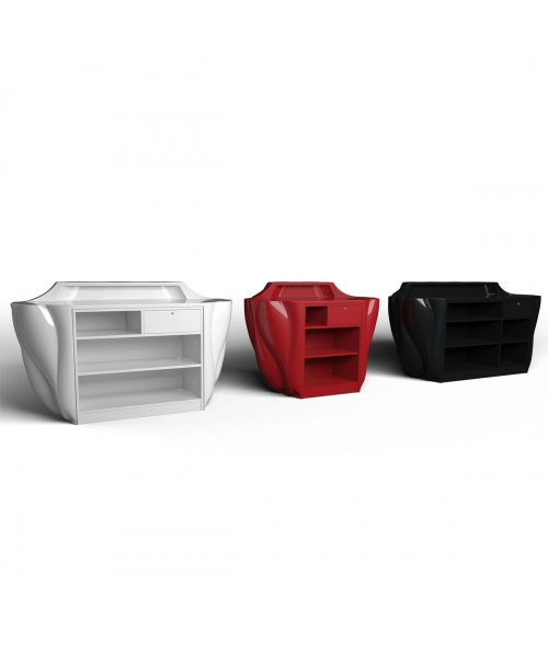 Стойка администратора "Sea Urchin 144" - с изогнутым декоративным фасадом. Корпус и наполнение стойки с артикулом G-м60003186выполнены в ламинате. Фасад выполнен из пластика в черном, красном или белом цвете.