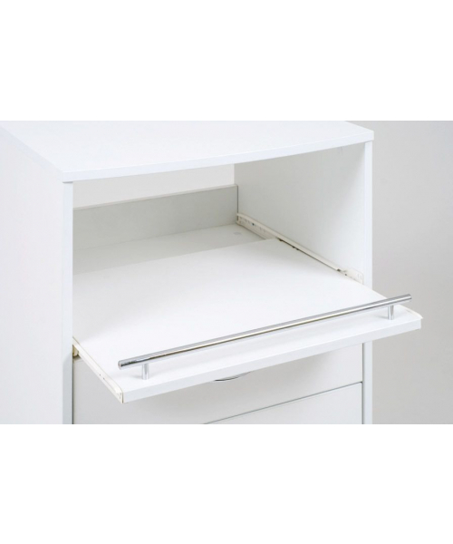 Тележка "Италика" является универсальной моделью, которая подойдет для установки в салоны красоты, стоматологии, центры ногтевого сервиса. Она изготовлена из качественного и практичного ЛДСП материала, который устойчив к влажности, перепадам температуры, химическим и механическим воздействиям. Современный дизайн, выполненный в белом цвете, позволяет ей гармонировать с любым интерьером.