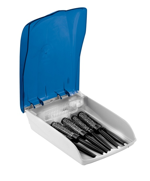 Стерилизатор ультрафиолетовый для парикмахерского инструмента. Перед стерилизацией инструмент необходимо промыть дезинфецирующим раствором. Время стерилизации 15-20 минут с каждой стороны. Служит также камерой для хранения маникюрного, педикюрного и косметологического инструмента после термической обработки. Цвет синий, оранжевый. Производство: CERIOTTI (Италия)