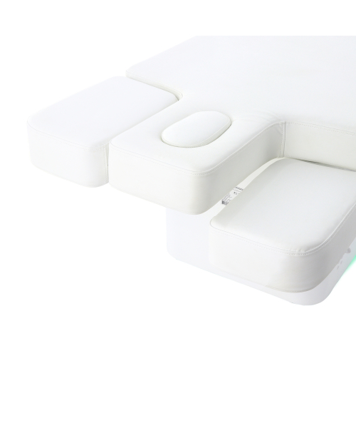 Модель имеет несколько секции и 4 мотора для удобной настройки подвижных частей ложемента. Благодаря широким возможностям регулировки стол позволяет выполнять все виды процедур на высоком уровне качества. За счёт надёжной стальной рамы изделие выдерживает нагрузку до 150 кг и готово к активной ежедневной эксплуатации.
