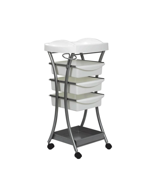 В комплекте есть съемный держатель для фена, окрашенный в цвет каркаса парикмахерской тележки.