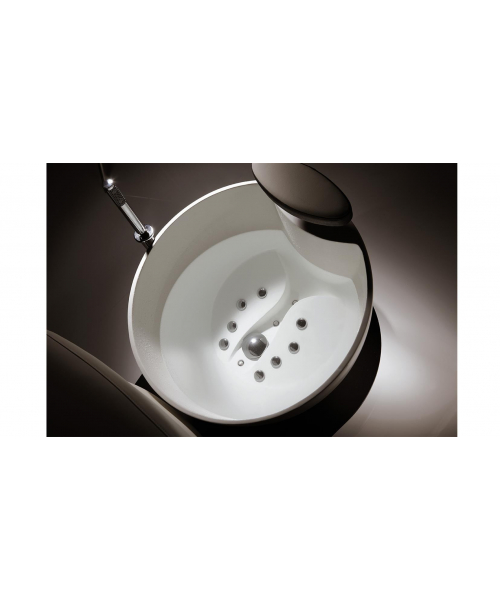 Это уникальная модель, отличающаяся удобством и эргономичностью. Для обеспечения максимального комфорта производителем предусмотрены удобные регулируемые подлокотники и мягкий подголовник. Чтобы клиенту было удобно садиться и вставать с кресла, предусмотрена возможность его поворота на 90 градусов. Ванна выполнена из белого материала, который легко очищается. Она оснащена душем и смесителем. Подставка для ног регулируется по высоте и глубине. Кресло обшито мягкой искусственной кожей, основание выполнено с использованием хромированной стали.